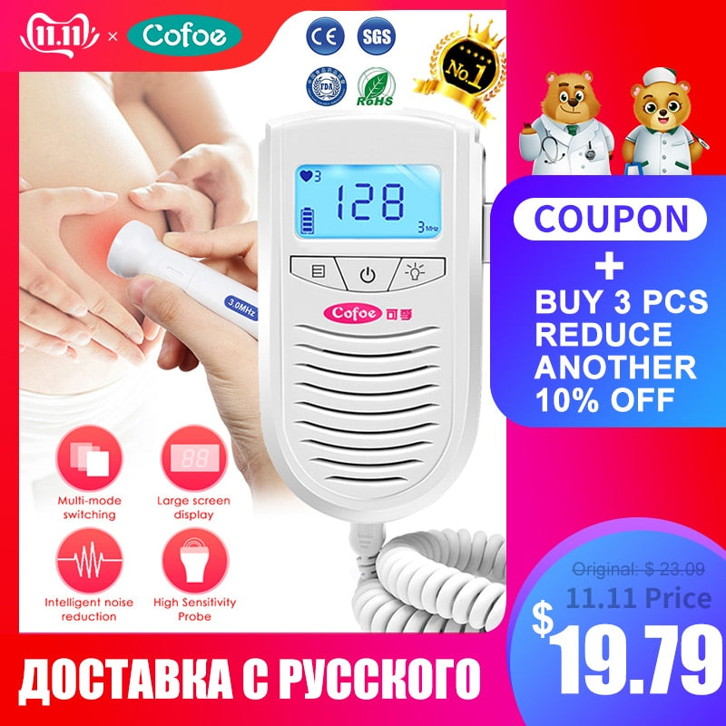 Cofoe Fetal Doppler Ultrasound Baby Heartbeat Detector Home Pregnant Doppler Baby Heart Rate Monitor Pocket Doppler monitor 3.0M